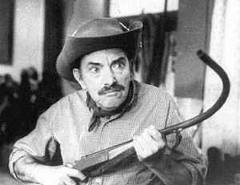 O ladrão todo atrapalhado deixa cair a arma,e o Caipira rapidamente pega a arma e atira no ladrão e corre!